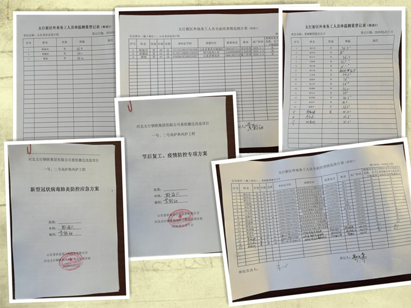 福建羅源熱風爐等高爐公輔及空壓站項目、邯鋼集團邯寶鋼鐵有限公司煉鐵廠2#高爐3#熱風爐功能恢復項目正在組織復工,目前都是在現場一人,其余管理人員也都做好了進場準備。