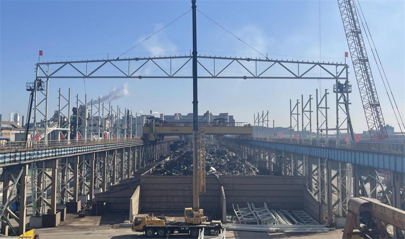 初春時(shí)節(jié),春寒料峭,天管廢鋼料場(chǎng)工地卻是吊車林立、熱火朝天。2月13日上午11時(shí)08分,我公司EPC總承包的天管制造有限公司廢鋼料場(chǎng)揚(yáng)塵治理項(xiàng)目(廠房)EPC總承包工程首榀剛架梁吊裝儀式如期舉行。