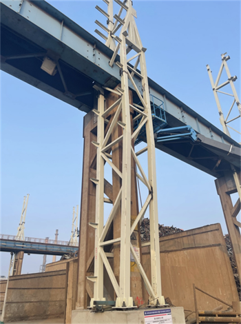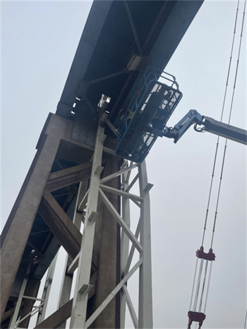 項(xiàng)目開(kāi)工后,項(xiàng)目部將施工圖與現(xiàn)場(chǎng)實(shí)際巧妙結(jié)合,立足保證原棧橋系統(tǒng)完整、獨(dú)立運(yùn)行為宗旨,攻克多項(xiàng)改造重點(diǎn)、難點(diǎn)。如利舊原有承臺(tái)短柱、鋼柱貫穿制動(dòng)板現(xiàn)場(chǎng)加固、斜桿穿吊車梁腹板并規(guī)避電纜橋架等障礙物、大跨度屋面桁架梁跨外吊裝等。提前策劃好每個(gè)節(jié)點(diǎn),做到現(xiàn)場(chǎng)施工完全落實(shí)設(shè)計(jì)意圖,實(shí)現(xiàn)了結(jié)構(gòu)安全、質(zhì)量可靠、進(jìn)度可控、經(jīng)濟(jì)合理。