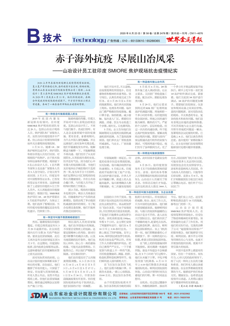 赤子海外抗疫 盡展山冶風采——山冶設計員工駐印度SMIORE焦爐現場抗擊疫情紀實